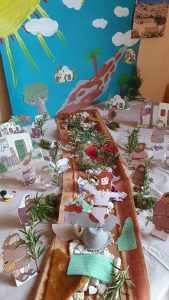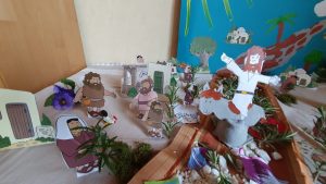 Auch von Seiten der Gemeinde üben wir uns im Kontakt halten: miteinander beten und Gottesdienst feiern, jeder bei sich zu Hause, aber in dem Wissen, dass wir gleichzeitig miteinander verbunden sind! Und besonders aus unseren Kitas haben die Familien ganz regelmäßig Grüße und Überraschungen geschickt bekommen – toll, wie viel Zeit und Arbeit und vor allem kreative Energie dort eingesetzt wird!